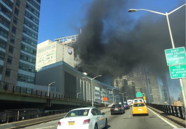 Nakon što je požar izbio na petom spratu zgrade njujorškog medicinskog centra koja je još u izgradnji, crni gusti oblaci su pokkuljali iznad Menhetna.