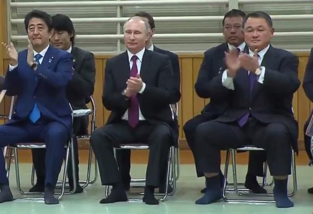 Interesantno je da je Putin kao i svi ostali pre ulaska u salu izuo cipele i ušao samo u čarapama.