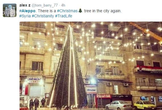 U delovima grada pošteđenim razaranja, koja su bila pod kontrolom vladinih snaga, restorani su bili prepuni hrišćana. Na stotine ljudi je igralo i veselilo se u naselju Azizija, gde je zasijala božićna jelka - prvi put od 2012. godine.S voje mesto su našli i posteri sa likovima Asad i ruskog predsednika Vladimira Putina. Broj hrišćana u Alepu se smanjio od početka sukoba sa 250.000 na 50.000.