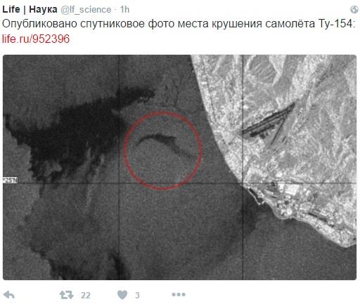 Spasilačka služba Ministarstva za vanredne situacije Rusije saopštila je da je na dnu Crnog mira, na 1,61 kilometar od obale, locirala olupinu "Tu-154" .Grupa ronilaca MVS pronašla je olupinu na dnu Crnog mora, nedaleko od odbrane, na dubini od 25 metara", saznaje Itar Tas. Fragmenti aviona već su se podiglina na površinu.