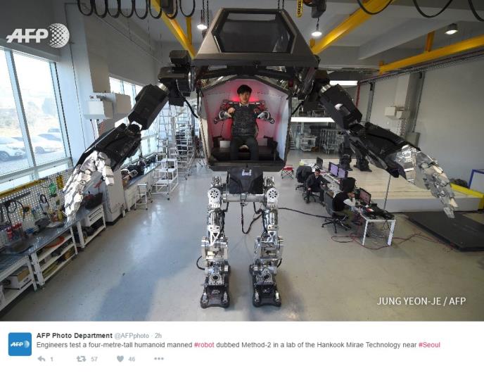 Južna Koreja napravila je ogromnog robota nalik na čoveka, koji i hoda kao čovek, međutim zbog velike težine ti koraci izazivaju podrhtavanje tla, prenosi AFP.