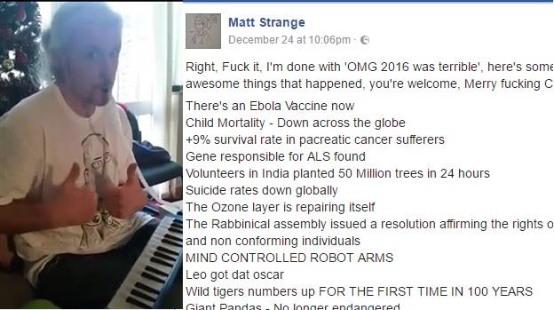 Na svom Fejsbukuk profilu Met Strendž iz Velike Britanije odlučio svima da pokaže zašto je 2016. godina bila sjajna godina, a taj Fejsbuk post lajkovan je i deljen preko 100,000 puta.