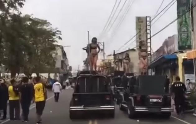Na ispraćaju tajvanskog političara učestvovalo je 50 plesačica koje su se oko šipke izvijale u oskudnim crnim bikinijima, a okupljena masa je blokirala saobraćaj.