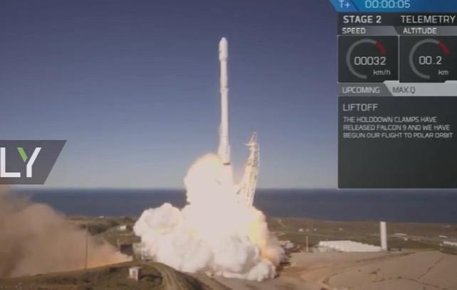 Raketa "Falkon 9" kompanije "Spejs iks" koja nosi satelit "Iridijum" poletela je sa vazduhoplovne baze Vandenberg u Kaliforniji, što je prvo lansiranje ove kompanije od kada je slična bespilotna raketa eksplodirala u septembru.