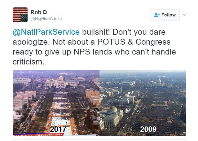 Ta služba je retvitovala par fotografija koje se, očigledno, nisu dopale Trampu, a na kojima se broj ljudi koji su svojevremeno prisustvovali inauguraciji dosadašnjeg predsednika Baraka Obame upoređuje sa brojem prisutnih na jučerašnjoj Trampovoj inauguraciji, prenosi AP.