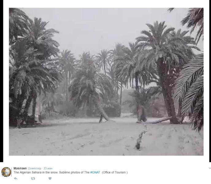 Pustinju Saharu prekrio je snežni prekrivač nakon najveće mećave otkako je merenja temperatura. Kako javljaju mediji, razlog je vrlo čudna snežna oluja koja se našla nad Alžirom.
