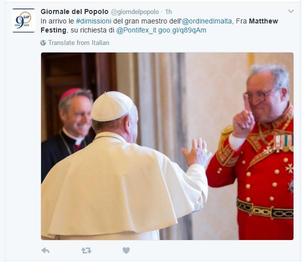 Frans pres je preneo da je portparolka rekla da je papa Franja tražio od Festinga da podnese ostavku i da je on to prihvatio.