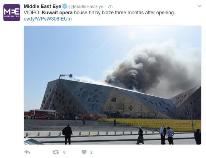 U novoj zgradi opere u Kuvajtu, koja je otvorena pre samo tri meseca, danas je izbio požar na krovnoj konstrukciji u kojem niko nije povređen.