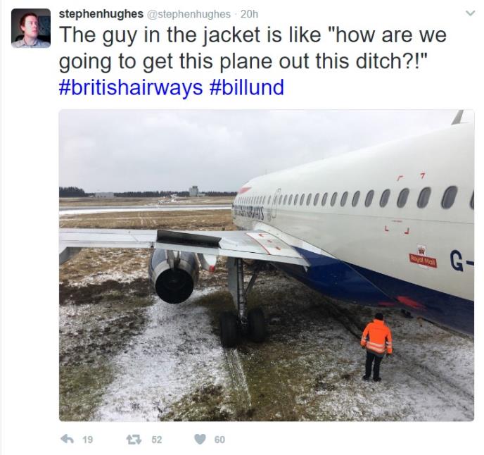 Airbus A319 koji može primiti do 160 putnika, skliznuo je s piste prilikom sletanja na aerodrom Bilund u Danskoj.