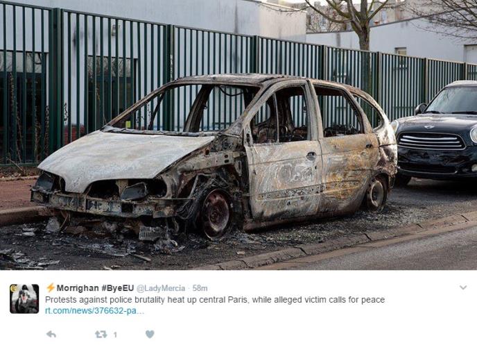 Policija je danas saopštila da je 17 ljudi uhapšeno u novim neredima u predgrađima Pariza, koji su izbili pošto je policajac navodno pendrekom silovao crnog mladića.