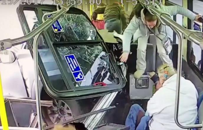 Nadzorne kamere na gradskom autobusu u Sirakjuzu zabeležile su stravičnu nesreću, kada je pik-ap bukvalno uleteo u gradski autobus.