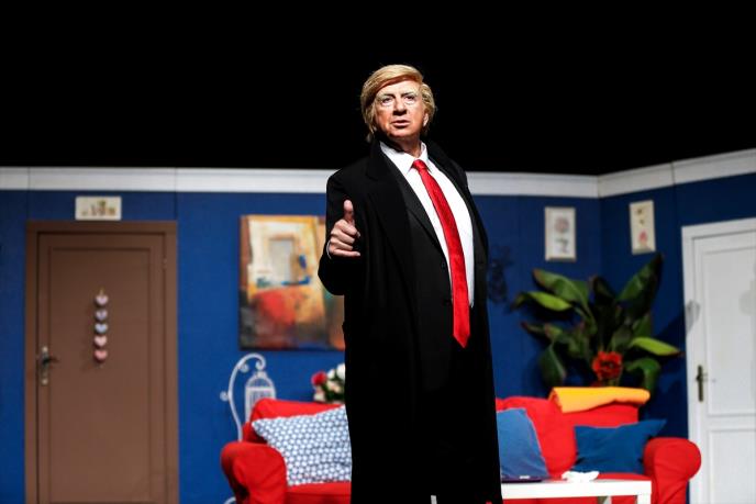 Glumac Erhan Jazicioglu, koji tumači lik Trampa u ovoj predstavi, na konferenciji za novinare objasnio je kako su došli na ideju da se u predstavi pojavi i lik novog američkog lidera.