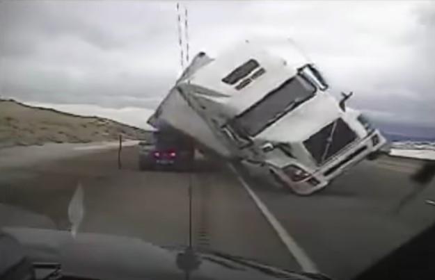 Ekstremno jak vetar u Americi izazvao je prevrtanje kamiona sa prikolicom preko policijskog vozila.