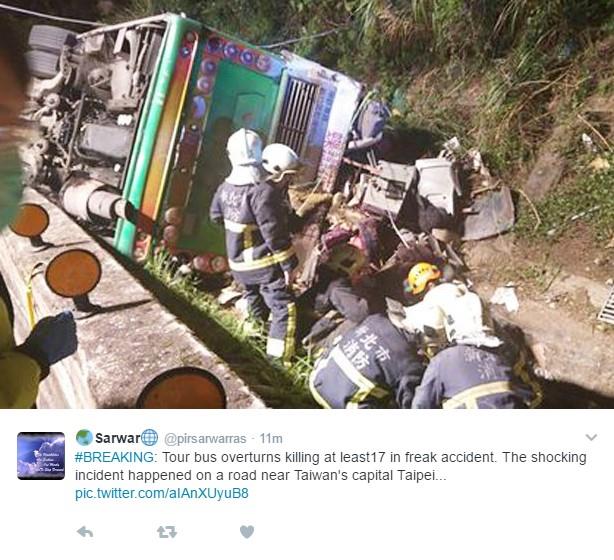 Tajvanski zvaničnici javljaju kako je otprilike 40 ljudi bilo u autobusu, kad je krenuo iz Tajpeja jutros, a 20 kola Hitne pomoći su trenutno na terenu, javlja CNA.