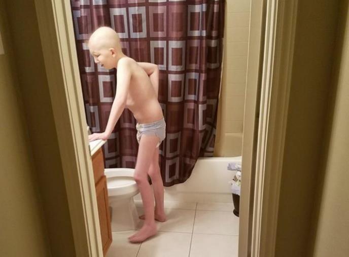 Potresna fotografija objavljena na Fejsbuk stranici Važna je ljubav (Love What Matters) prikazuje 10-godišnjeg Drejka u kupatilu koji na sebi ima samo stavljenu pelenu. S mučnim izrazom lica, ovo dete trpi bolove od raka.