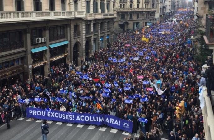 Nekoliko hiljada demonstranata izašlo je danas na ulice Barselone zahtevajući od konzervativne španske vlade da primi više izbeglica koje beže od rata u Siriji i drugih sukoba.