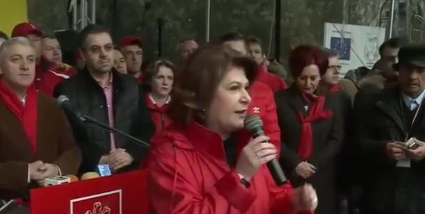 Pristalice vladajuće Socijaldemokratske partije, okupile su se u gradu Trgovište, koji se smatra uporištem te partije i pevali patriotske pesme kako bi pojačali podršku vladi premijera Grindeanua koja je na vlasti dva meseca, prenosi AP.