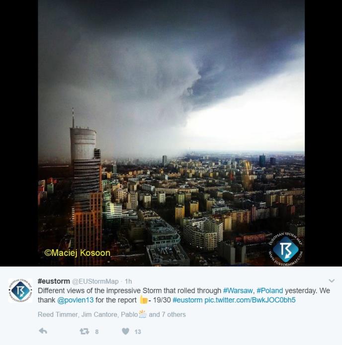 "Muškarca je na mestu ubilo drvo koje je palo na njega u mestu Ribna. Povređeno je takođe sedmoro ljudi, kada je na njih ili njihov automobil palo drvo ili granje ili su udarili u oboreno drvo na drumu. Vatrogasci su, najviše u južnim i centralnim vojvodstvima Poljske, izlazili na teren 1.846 puta", rekao je portparol Državne vatrogasne straže Pavel Frontčak.