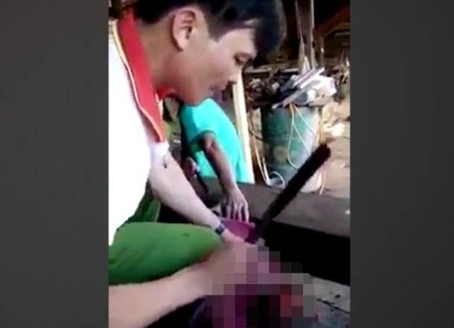 Na videu se vidi momak koji sa nožem od 30 centimetara udara po lobanji dok je ne otvori.