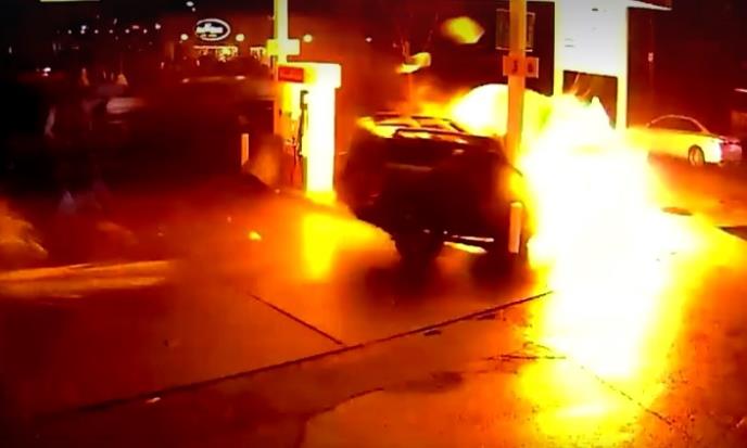 Snimak nadzornih kamera na jednoj pumpi u Sijetlu pokazuje incident u kome kola prolaze kroz nju u punoj brzini i izazivaju manju eksploziju.