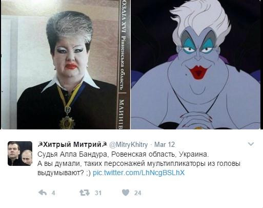 Ala Bandura je ukrajinski sudija koja neodoljivo podseća na zlu Ursulu iz kultnog Diznijevog crtaća "Mala sirena".