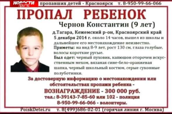 Konstantin Černov (9) nestao je 5. decembra 2014. iz škole u Tagaru, selu u Krasnojarskom kraju. Svi su se nadali da će ga pronaći, ali u sredu se saznala jeziva istina - njegovi posmrtni ostaci pronađeni su baš u školi, svima ispred nosa!