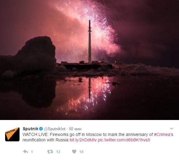 Festival Proleće, posvećen trećoj godišnjici ujedinjenja Krima s Rusijom, završen je masovnim pevanjem ruske himne i živopisnim vatrometom na Univerzitetskom trgu ispred glavnog zdanja Moskovskog državnog univerziteta na Vorobjovim gorama.