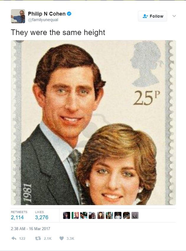 Naime, Čarls i Dajana bili su iste visine, a na ovoj fotografili ona je za glavu niža od njega. I ovo nije jedina takva fotografija; ima mnogo takvog namernog obmanjivanja, pre svega bezrazložnog, smešnog i beskorisnog, smatraju Tviteraši.