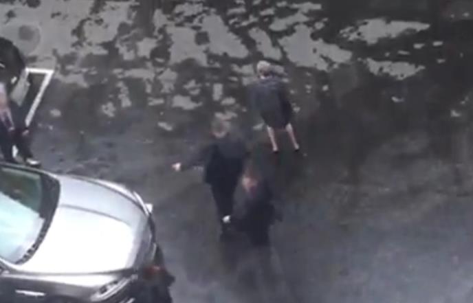 Ona, kako se vidi na snimku, hoda ka automobilu u pratnji pet članova obezbeđenja, a zatim ubrzava i u trenutku panike počinje da se kreće levo-desno.