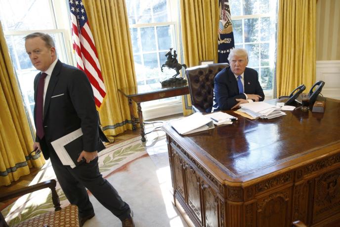 Portparol Bele kuće Šon Spajser predao je ček sekretaru Rajanu Zinkeu, koji je naveo da je oduševljen odlukom Trampa.