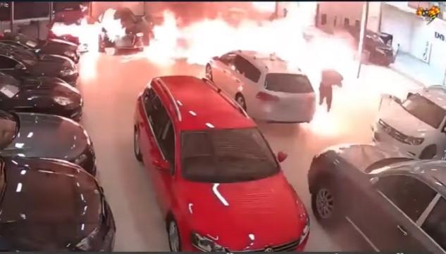 "Kakav idiot", jedan je od najčešćih komentara na Jutjubu i društvenim mrežama ispod snimka na kome maskirani muškarac u Švedskoj prvo poliva benzinom, a onda pali garažu punu vozila.