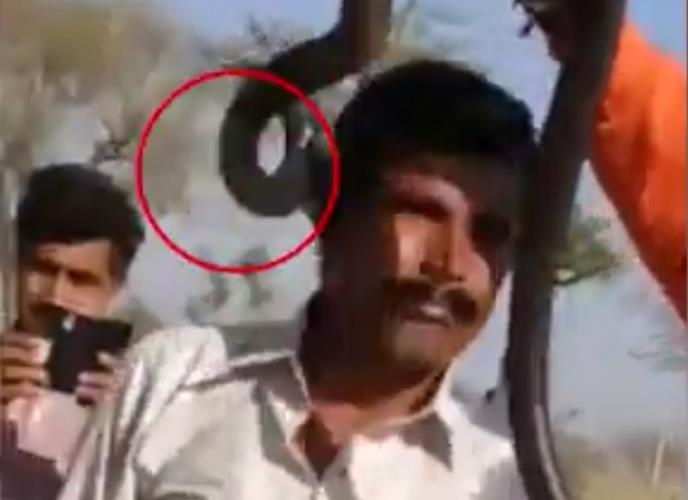 Video koji je nastao Jodpuru u indijskoj provinciji Ražastan prikazuje stravičan prizor ujeda kobre. Naime, dok je čovek zadužen za zmiju stavljao otrovnicu oko vrata nesrećnog turiste, vidno iziritirani reptil je iznenada napao i ujeo ga za obraz. Ujed je taman toliko trajao da je smrtonosna doza otrova brzo učinila svoje.