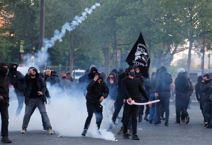 AFP prenosi da su neki među levičarskim demonstrantima bacali flaše i petarde na policajce, a policija je saopštila da su tri osobe uhapšene.