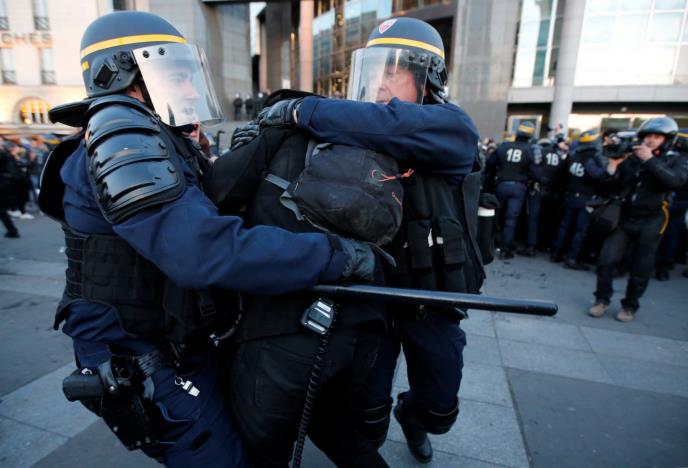 Pre toga demonstranti su se okupili i u istočnom delu Pariza na Trgu Bastilje, gde je došlo do sukoba sa policijom koja je upotrebila suzavac da bi rasterala sve nemirnije levičarske demonstrante, među kojima su preovladavali mladi.