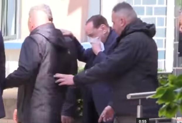 Snimci pokazuju Berluskonija kako drži maramicu preko usana dok napušta kliniku Madonina.
