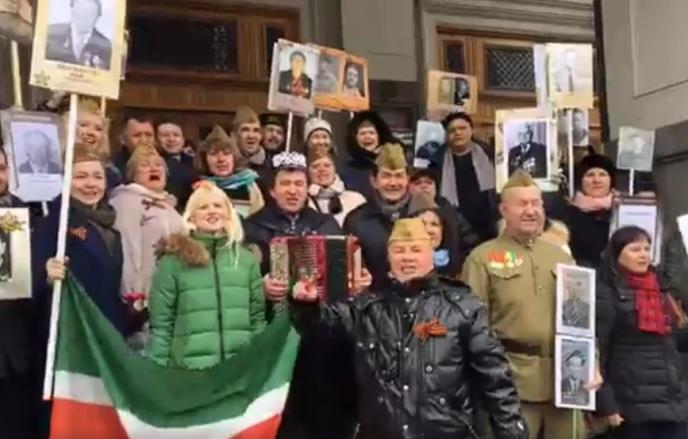 Sa marša Besmrtnog puka, okupljeni Rusi, nisu zaboravili ni Srbe, koji su u ratu dali veći broj boraca protiv fašizma nego što su to učinili Francuzi, ali i skoro isti broj kao Britanci i Amerikanci.