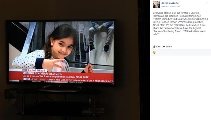 Registracija automobila je NG11 BMZ a devojčica, čije je ime Beatris Felisija, ima dugu crnu, upletenu kosu i plave oči. Devojčica je rumunskog porekla, a nosila je pink majicu i sive helanke.
