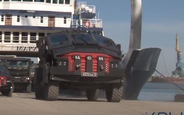 Pripadnici Centra za specijalne namene FSB demonstrirali mogućnosti novih blindiranih vozila Falkatus u okviru antiterorističkih manevara koji se održavaju na Krimu.