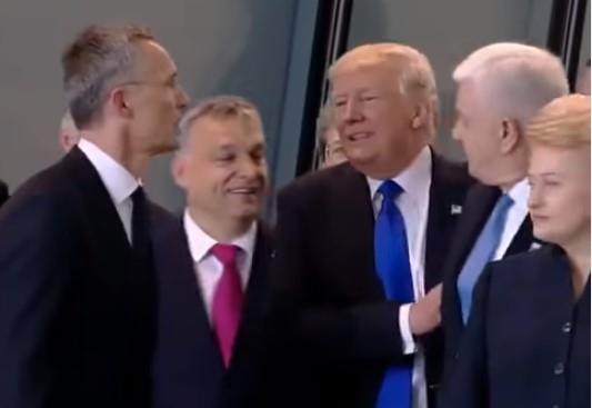 Njega je, kako bi se probio do generalnog sekretara NATO Jensa Stoltenberga, Tramp grubo i bez pardona odgurnuo u stranu kao bi stao u "prve redove" .
