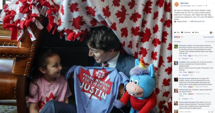 Naime 5-godišnja devojčica Bela, pobedila je na takmičenju dečije televizije CBC i dobila mogućnost da postane kanadski "Premijer na jedan dan." Njena nagrada je druženje s Trudoom.