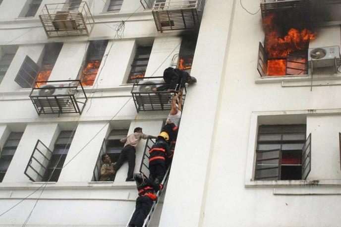 Vatrogasci su koristili hidraulične platforme za evakuaciju ljudi koji su se našli okovani vatrom a dva mornarička helikoptera su evakuisala one koji su potražili utočište na krovu zgrade.