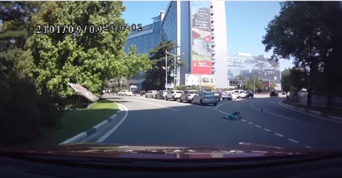 Nesvakidašnja saobraćajka se dogodila kod hotela Moskva u centru Sočija kada je ženi (39) dvoje dece ispalo kroz gepek automobila tokom vožnje.