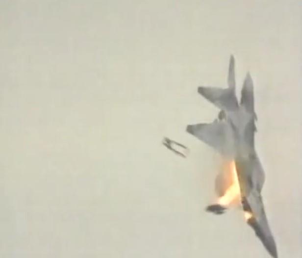 Tog trenutka pilot je osetio udar u desnom motoru, posle čega je došlo do naglog pada potiska. Avion je počeo da se zakoreće. Nakon što je pilot Kvočur uspeo da skrene avion sa tribina na bezbedni pravac, pilot je napustio avion katapultirajući se iz letelice pomoću izbacivog sedišta.