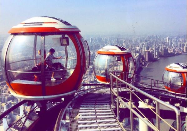 Babl Tram na tornju Kanton u Guangdžou u Kini najviša je vrteška na svetu.
