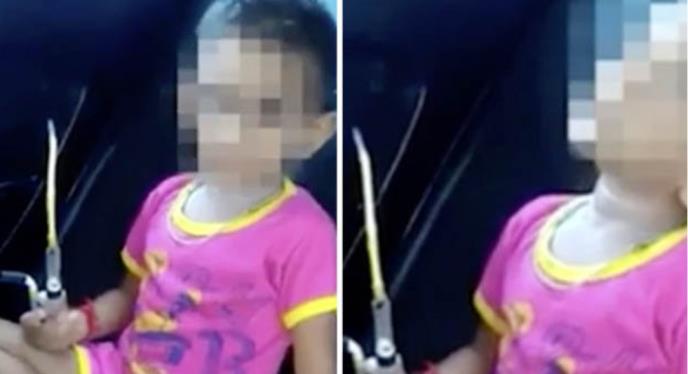 Trogodišnji dečak je snimljen kako na zadnjem sedištu automobila drži punu lulu metamfetamina dok ga u pozadini muški glas pita :"Da li se se već naduvao?"