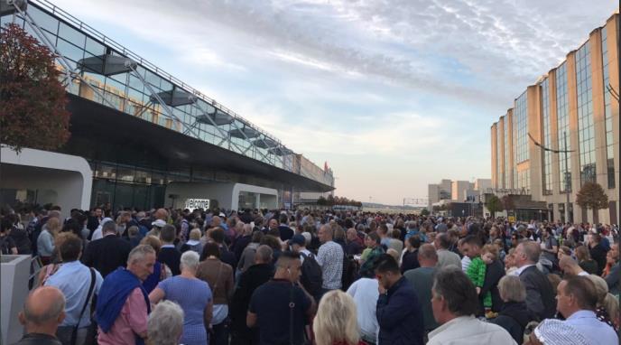Iako nije bilo službene potvrde aerodromskih zvaničnika, fotografije na Tviteru pokazuju veliku grupu ljudi koja čeka ispred aerodroma.