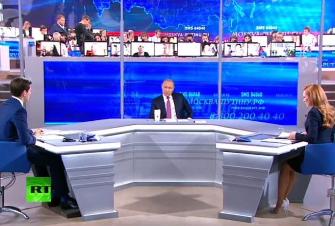 Prvo pitanje odnosilo se na ekonomsku krizu u Rusiji, a Putin je istakao da je ekonomija države izašla iz recesije. On je, međutim, izrazio zabrinutost, jer se poslednjih godina povećao broj građana koji žive ispod granice siromaštva i da je u pitanju 13,5 odsto ljudi.