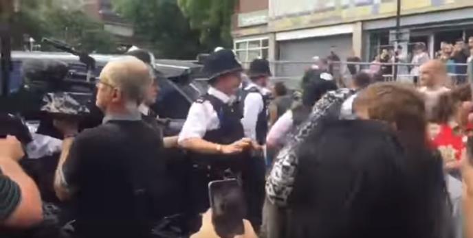 Policija je pohitala da formira barikadu oko kola premijerke dok je oko 70 ljudi trč