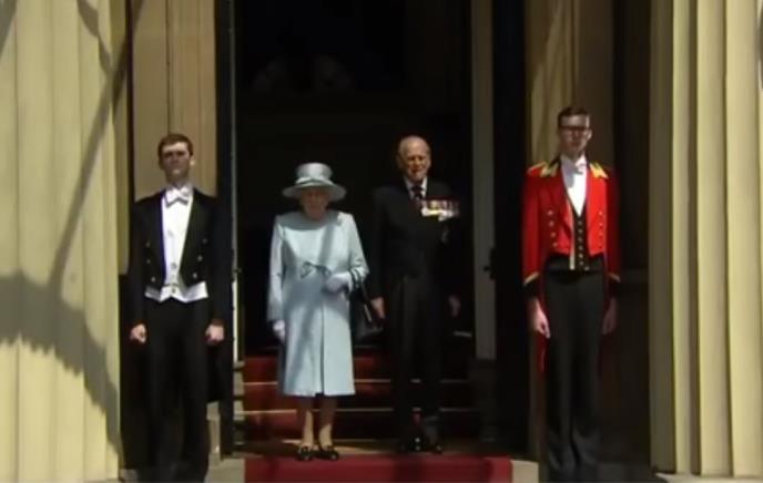Kraljica i njen suprug, princ Filip, minutom ćutanja su odali poštu žrtvama na stepenicama Bakingemske palate, pre početka rođendanske ceremonije.