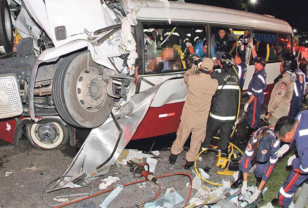 BRAZILIJA - Najmanje 21 osoba je poginula, dok je 30 ljudi povređeno u stravičnom sudaru kamiona natovarenog kamenjem, autobusa i dvoje ambulantnih kola, koji se dogodio juče na jugoistoku Brazila.